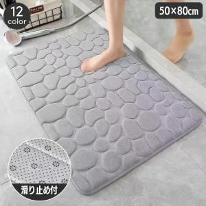 バスマット 足ふきマット 50 80cm 吸水 ふかふか 厚め 滑り止め 玄関 トイレ 浴室 洗面所 フロアマット ドアマット 石畳風 模様入り 風呂