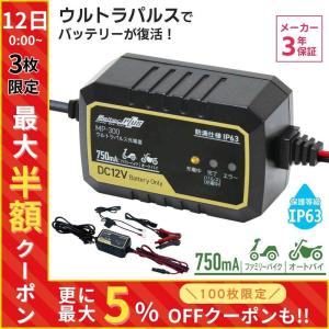 バッテリー充電器 12v パルス充電 バイク ウルトラパルス充電器 0.75a mp-300 メルテック 750ma 防水 防塵 オートチャージ