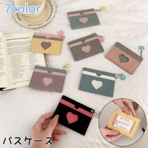 パスケース レディース カードケース カード入れ 定期入れ 社員証 IDカードホルダー ハート フェイクレザー かわいい おしゃれ フェミニン カジュ