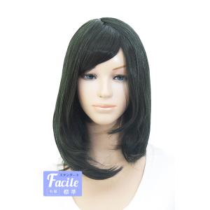 ミディアム 「フォレストブラック」「ウィッグネット付」コスプレウィッグ セミロングウィッグ 安い 耐熱180℃(mi-bg0019)