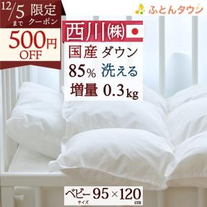 ベビー布団 羽毛布団 西川 日本製 洗える 国産ダウン 増量タイプ 西川リビング 洗えるベビー羽毛布団 ヌード ベビー用 95×120cm