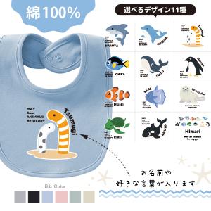 スタイ お名前入り ペンギン イルカ シャチ サメ チンアナゴ カクレクマノミ ベビー 赤ちゃん 綿 100 よだれかけ ビブ 名前入 出産祝い / スタイ 水族館