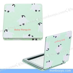 ペンギン グッズ コンパクトミラー 四角 拡大鏡 ワールド商事 携帯用ミラー ベビーペンギン メール便発送可