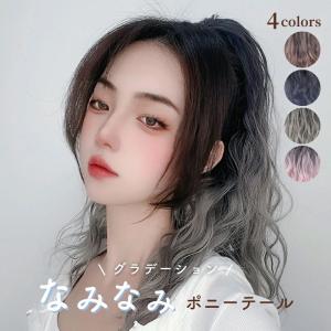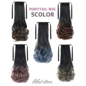 ウィッグ ポニーテール用 ポイントウィッグ レディース グラデーション ロング ウェーブ カール つけ毛 リボン ツートン おしゃれ かわいい 女性