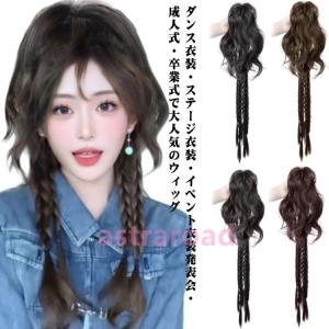 ウィッグ ポニーテール ロング エクステ クリップ カール ツインテール 編み込み ダンス 自然 つけ毛 ストレート ウェーブ コスプレ