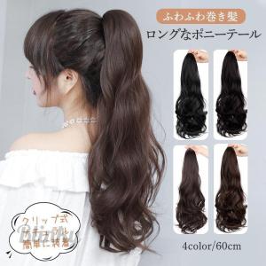 ポニーテール ウィッグ ロング エクステ 髪 クリップ式 60cm ワンタッチ 巻き髪 つけ毛 ナチュラル コスプレ ツインテール 和装 結婚式 簡単