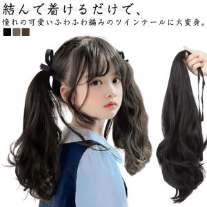 子供ウィッグ エクステンション ボリューム キッズ つけ毛 髪飾り リボン付き ポニーテール ポイントウィッグ ゴムポニーテール 女の子 ウィッグ エ