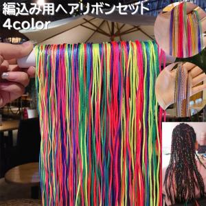 編込み用ヘアリボンセット ヘアゴム ヘアロープ ヘアアレンジ用 ヘアアクセサリー リボン 三つ編み グラデーション ポニーテール エクステ カラフル