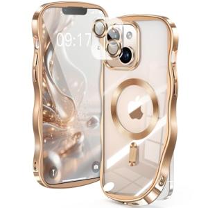米軍進化耐久・Dリング・キュートなウェーブエッジihone 13/14 ケース カメラ全面保護Maafe対応カメラフィルム 強力マグネット 衝撃
