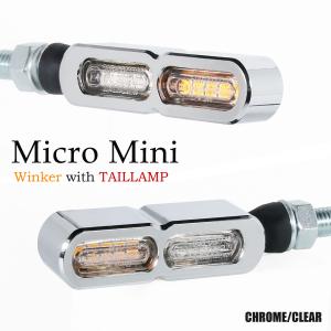 テールライト付 マイクロミニウインカー ダブル リア用 LED 車検対応 クローム メッキ クリア レンズ 12V 汎用 アルミ製 左右セット バイク カスタム パーツ