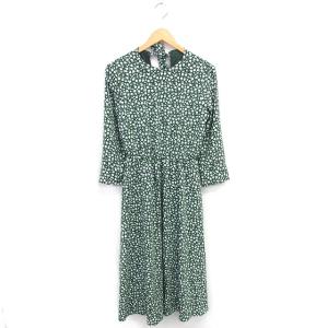 ミラオーウェン Mila Owen ワンピース フレア 花柄 ロング リボン プルオーバー 長袖 F 緑 白 グリーン ホワイト /TT2 レディース