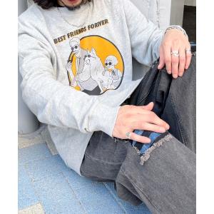 トレーナー スウェット 「MODISH GAZE」BEST FRIENDS FOREVERサークルプリント裏毛トレーナー メンズ レディース