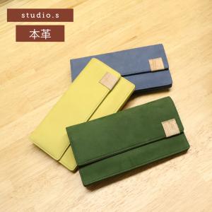 studio.s スタディオエス 長財布 レディース レザー かぶせ長財布 本革 上質レザー 使いやすい財布 グリーン 緑 ブルー 青 イエロー 黄 ブランド モス