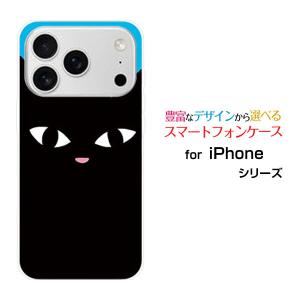 スマホケース iPhone 17 Pro Max アイフォン セブンティーン プロ マックス ハードケース/TPUソフトケース 黒猫(ブルー) ねこ 猫 青 顔 ポップ