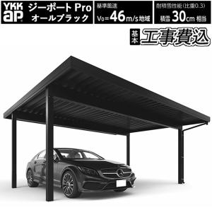 カーポート 2台用 工事付 ジーポートpro 900タイプ 55-55型 H24 オールブラック仕様 基本工事費込み YKK AP ジーポートプロ 車庫 駐車場 屋根 後付け おしゃれ