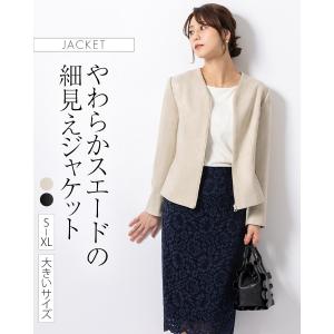 ジャケット ノーカラージャケット スエードライク out010049 きれいめ 30代 40代 50代 着やせ 上品 大きいサイズ トールサイズあり 長袖 春 秋 冬