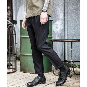 スラックス 「セットアップ対応」レトロ ポリエステルツイル / ワンプリーツ テーパード トラウザーパンツ (センタープレスパンツ) メンズ