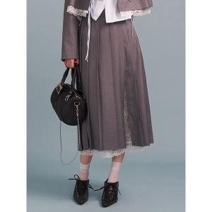 スカート ベルトヘムレースロングプリーツスカート「セットアップ対応」卒業式 入学式 結婚式 二次会