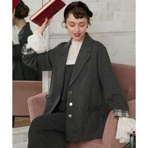 ジャケット テーラードジャケット 「BONLECILL noir」「セットアップ対応」ダブルリボンオーバーテーラードジャケット レディース