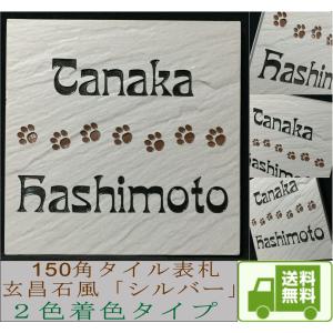 二世帯住宅用デザイン多数 タイル表札 石感のあるおしゃれ表札 150角玄昌石風タイル表札「シルバー」2色着色タイプ 戸建て 和風 追加マグネット可