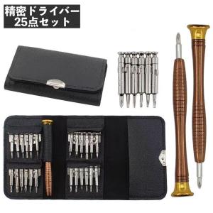 ドライバーセット 25点セット ケース付き ビット ドライバーキット コンパクト 持ち運び便利 修理 レザー調 DIY 多機能 精密 修理 携帯電話