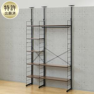 幅120cmセット 幅40+80/ワードローブ/棚板8枚 突っ張り壁面収納Nポルダ2連 ミドルブラウン ニトリ期間限定:4/6迄