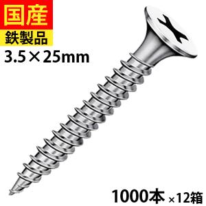 ドライウォール 石膏ボード ビス ネジ軽天軽天 ラッパ頭 カラー 白 ユニクロ 3.5 × 25 1箱 1000本 × 12箱