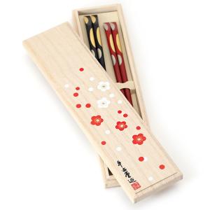 吉祥梅箱入 天削箸 夫婦 ( めおと ) 日月 お箸 漆塗り ペア 夫婦箸