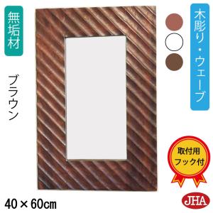 JHAアンティークミラー (デラックス) ウッディ・モダン・木彫りミラー(ウェーブ)W400×H600(ブラウン)壁掛け鏡 ウォールミラー バリ島 洗面 トイレ