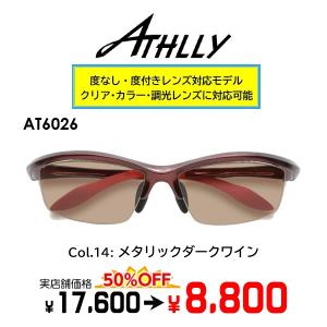 スポーツ サングラス(度あり、度数注文可)軽量 ATHLLY SPORTS アスリースポーツ AT6026 ※セット フレーム レンズ付き 度付き 近視 乱視 カラー クリア 調光