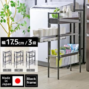 ランドリー収納 隙間収納 サイドラック 洗濯機横 3段 幅17.5cm Mタイプ ブラック ランドリーラック 段差 隙間ラック スリム 黒 燕三条 川口工器