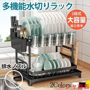 水切りカゴ 水切りラック 2段 シンク上 多機能 水切り 食器置き 水切りかご シンクサイド 排水ノズル 大容量 食器 シンプル 台所 キッチン用品 2024年最新