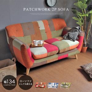 パッチワーク ソファー 2人掛け コンパクト おしゃれ 北欧 脚 取り外し ロータイプ リビングソファー 二人掛け グリーン ブルー オレンジ アウトレット 人気