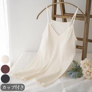 シルク100% テレコ 金具がないカップ付きキャミソール 病院用 日本製 ウォッシャブル加工 レディース ブラウン ブラック M/L