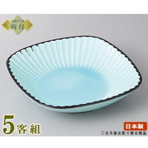 日本製 向付 お皿 5個セット 送料無料 黒土化粧しのぎ ブルー 6.5寸角鉢 5個 業務用 食器 陶器 土物 向付鉢 お膳 器 皿 鉢 盛り皿 お刺身 盛付皿 青 ブルー 水色