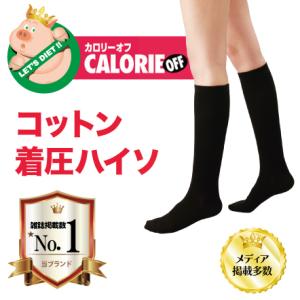 ハイソックス 着圧 靴下 カロリーオフ 段階式着圧 コットンハイソックス ブラック プレーン