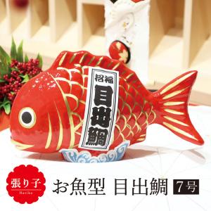 鯛 縁起物 ディスプレイ/張り子 お魚型 目出鯛 7号/お正月 置物 飾り めでたい タイ お祝い プレゼント 贈り物 お土産 はりこ 日本製 赤 開運招福 吊るし 和雑貨