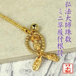 縁起物根付 弘法大師珠数ミニ草履根付 ストラップ 金色根付 送料無料
