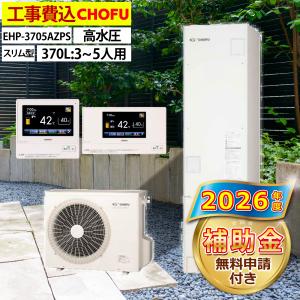 エコキュート 交換工事費込み 補助金対象機種 長府製作所 EHP-3705AZPS フルオート スリム 370L 3〜5人用 高水圧 一般地仕様 リモコン・脚部カバーセット