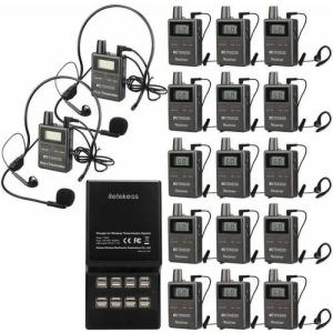 Retekess ツアーガイドシステム TT105 (双方向送信機×2台&受信機×15台セット+USB充電ベース付き)