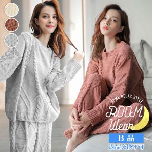 パジャマ レディース 上下セット 冬 長袖 ニット ルームウェア セットアップ ニットパジャマ かわいい ゆったり もこもこ【訳有りの為返品交換不可】