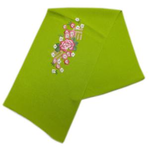【訳有り 少難あり】 帯揚げ 帯上げ 刺繍入り 正絹 黄緑色地牡丹小桜源氏香 日本製 振袖 成人式 着物