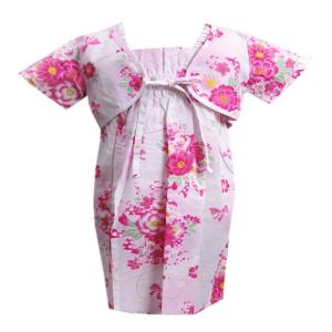 【訳有り 少難あり】 セパレート ボレロ サンドレス 2点セット 浴衣風 キッズ 淡ピンク白地古典花束リボン 3〜4才(100cm) 5〜6才(110cm) 7〜8才(120cm)