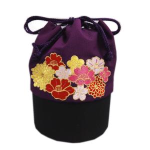 訳有り 少難あり 巾着 バッグ ちりめん 刺繍 底かご 円筒型 紫色地桜梅菊椿 卒業式 袴 はかま 着物 和柄 女性用