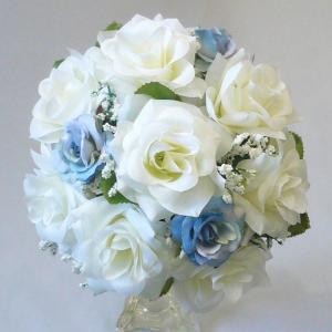 アートフラワー〔造花〕ブーケ/ブライダルブーケ/トス用 ホワイト&水色
