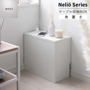 RASIK ケーブルボックス 角置き 幅40cm(ホワイト/白/WH)木目調 コンセント付 ルーター コード 配線 目隠し 収納 BOX 生活感を見せない Nelio ネリオ 家具 組立