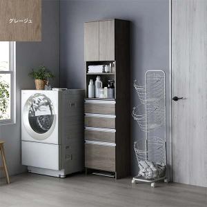 ランドリーチェスト 幅45cm(グレージュ/Greige)汚れに強い 扉付 すき間収納 全段スライドレール付 洗面所 サニタリー キッチン 棚 収納 引き出し 大容量 RASIK