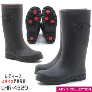 レディース 冬用 防寒 防滑 ピンスパイク 長靴 ブラック ブラウン 除雪 雪 スノーブーツ 凍結 完全防水 LHR-4329