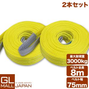 運搬用スリング 3t ベルトスリング 8m 耐荷重 3000kg 2本 繊維ベルト 吊りベルト 玉掛け クレーン 帯ベルト 吊り上げ 運搬作業 土木 業務用 吊り具