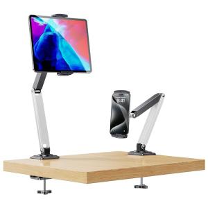 タブレットスタンド クランプ式 アーム 角度 調整 360度 回転 卓上 対応 スマホ iPad 4〜13(銀 (Silver))